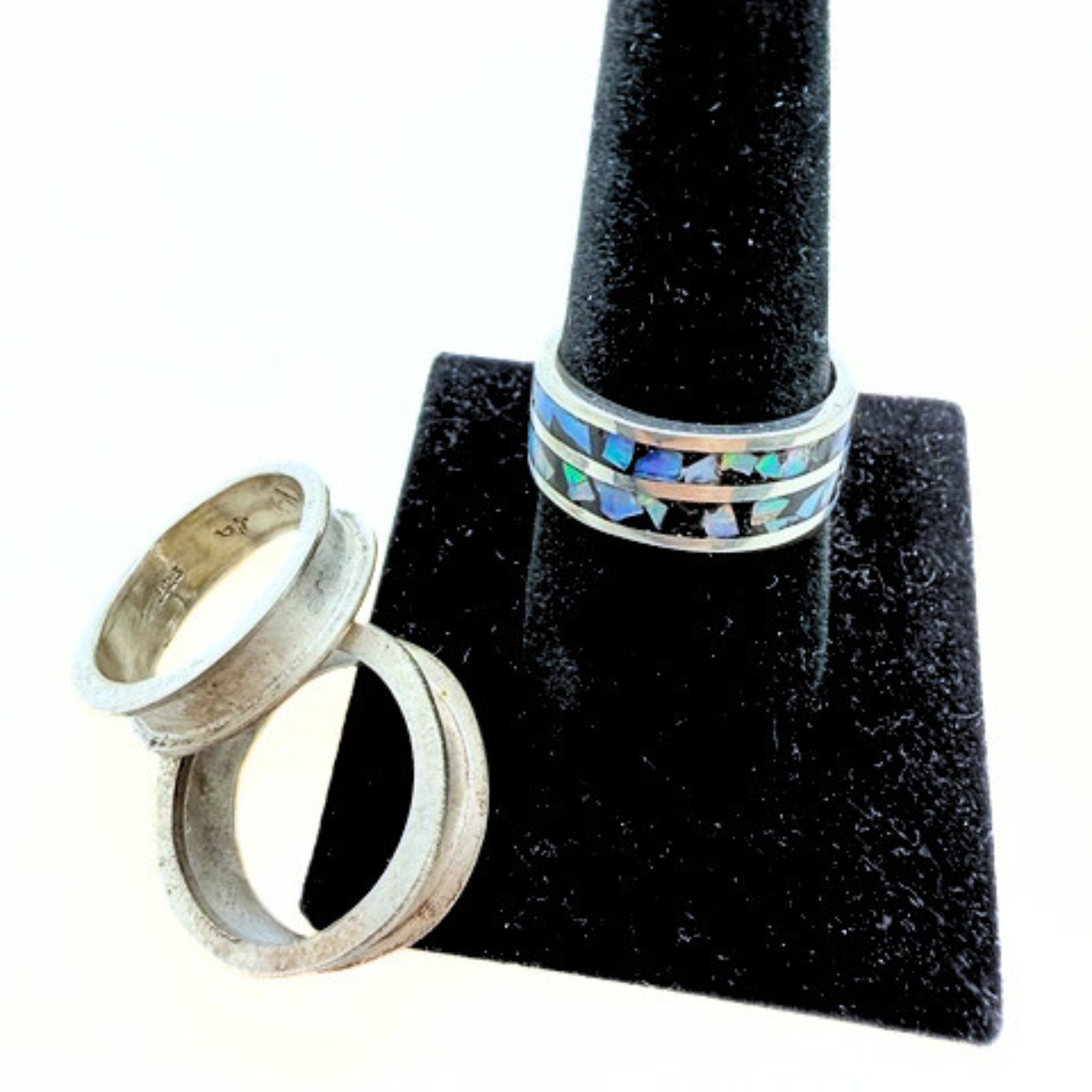 In this workshop, students will fabricate two sterling silver channel inlay rings from 14 gauge square sterling wire and 20 gauge sterling sheet. Soldering, forming, clean up, and polishing will be covered. The class fee is $375, which includes all necessary materials and supplies to make two rings, as well as access to all required shop tools. This is a great companion class to Chuck's Opal Inlay Ring class--create your rings in Silver and inlay them with Opal