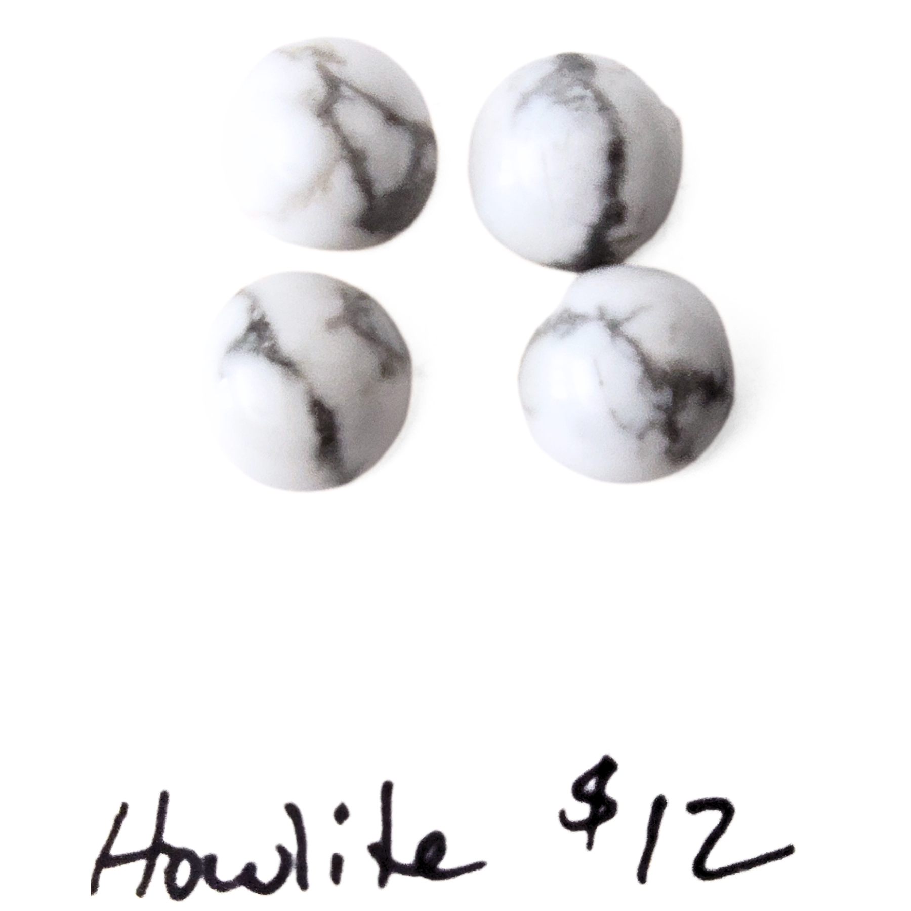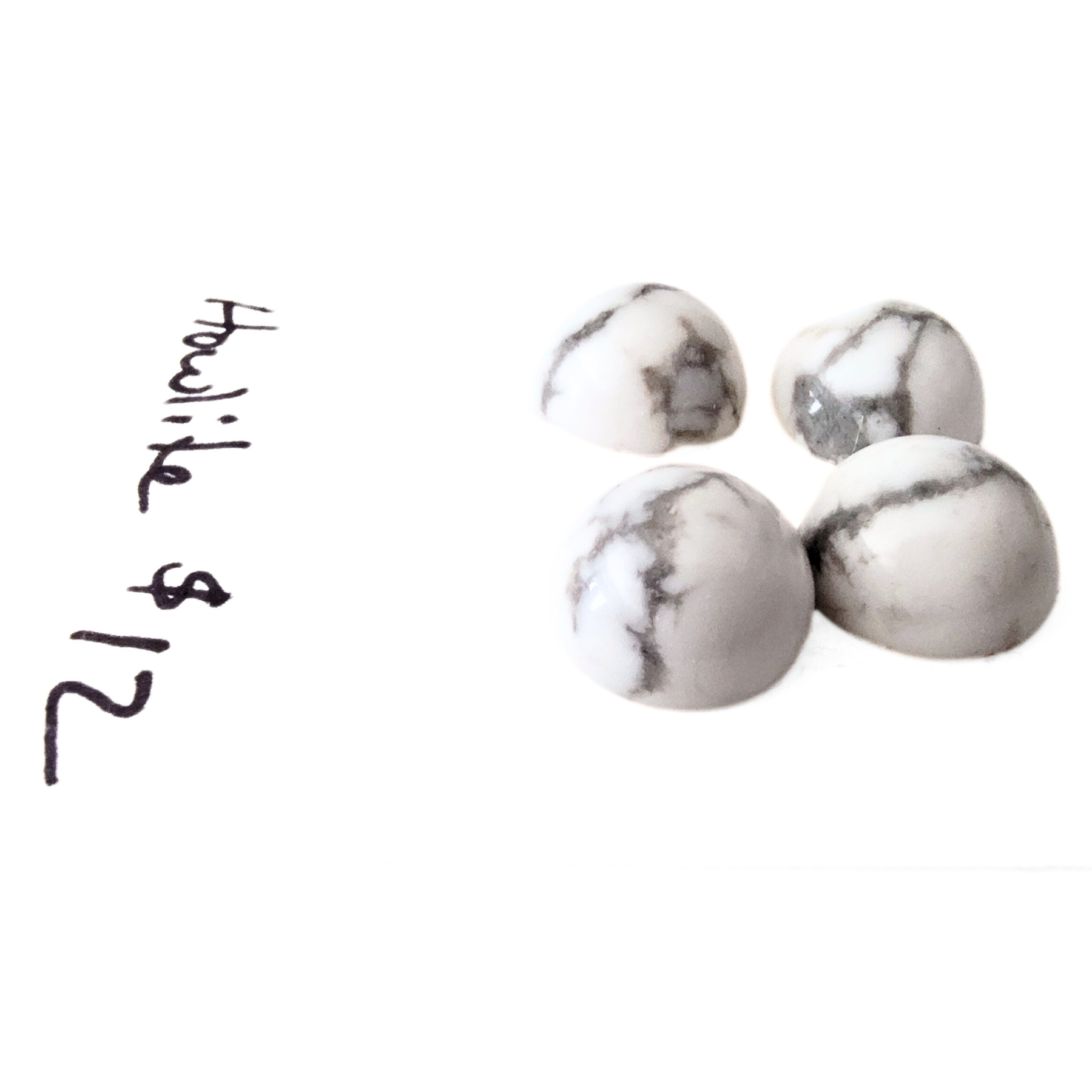 Lovely round Howlite cabochons in snowy white with beautiful soft gray veining. These nicely domed cabs are perfect for lovely pairs of earrings or sweet rings at 10mm.