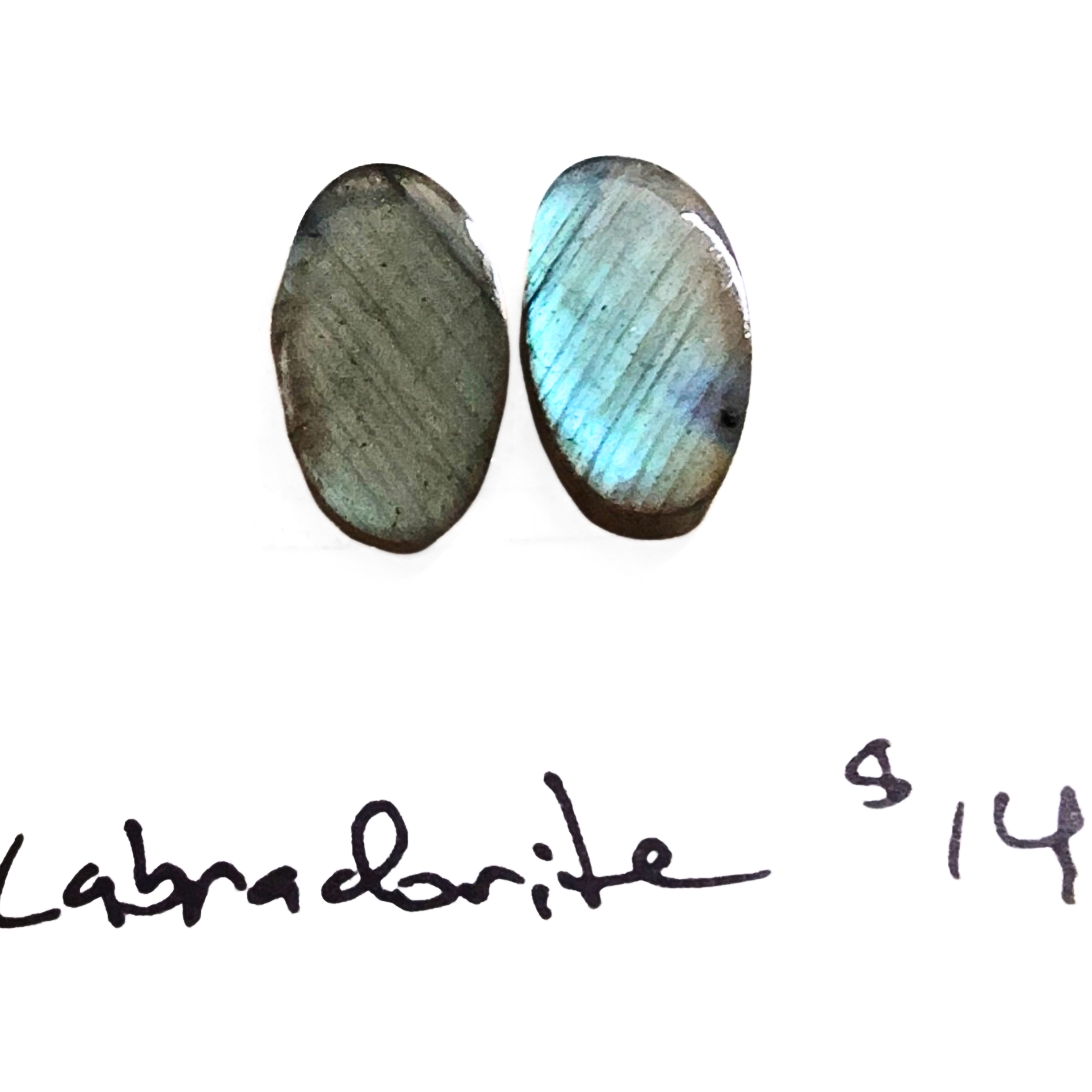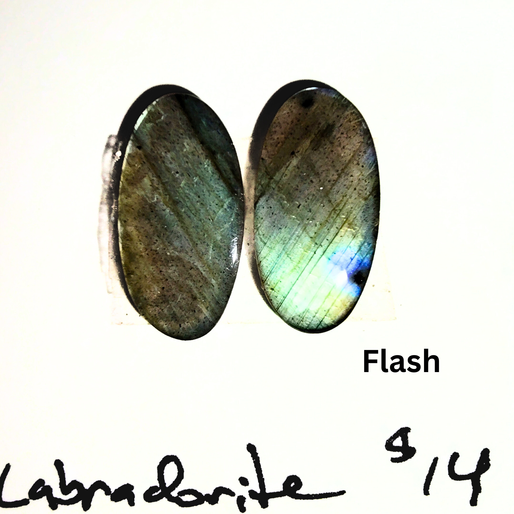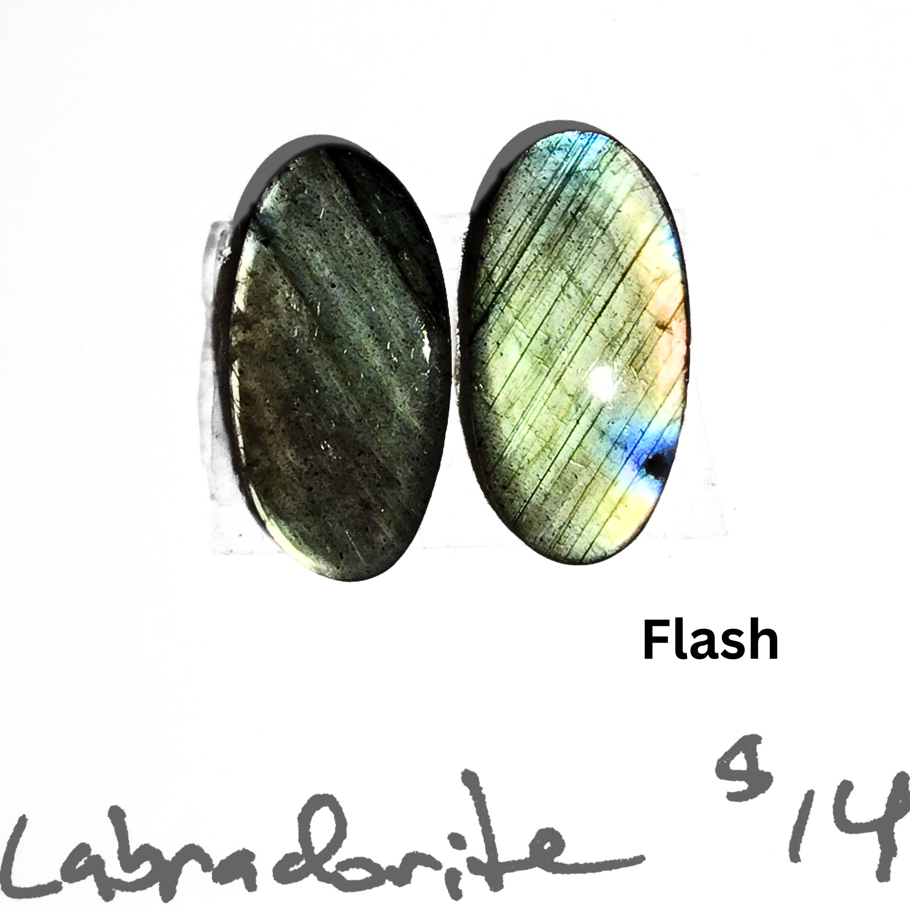 Shimmering oval shaped Labradorite pair with lots of flash and fire! These stunning stones are beautifully matched for a pretty pair of earrings at 10mm x 19mm.