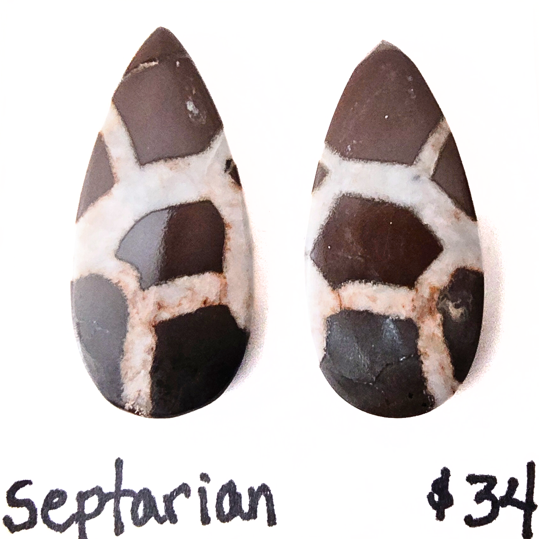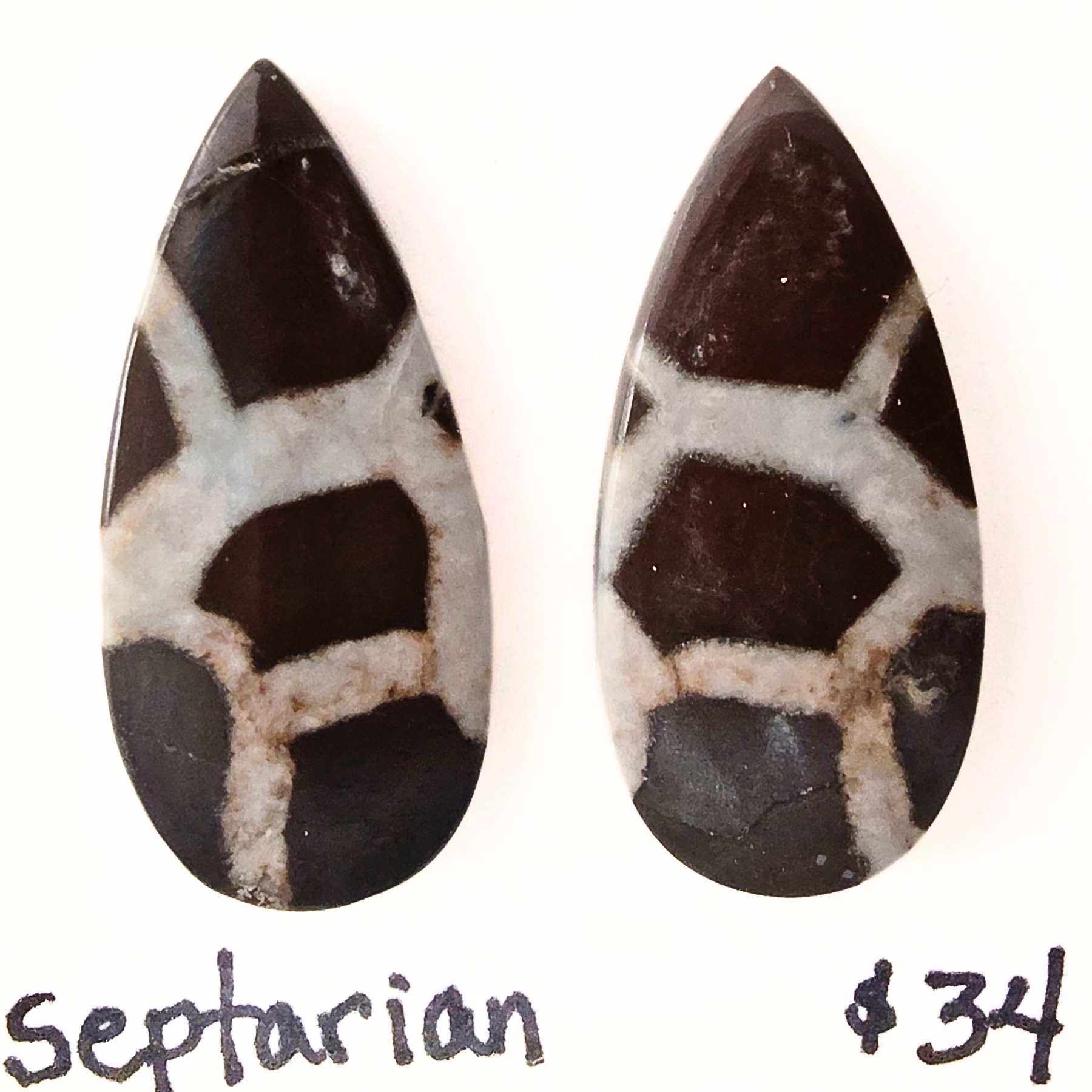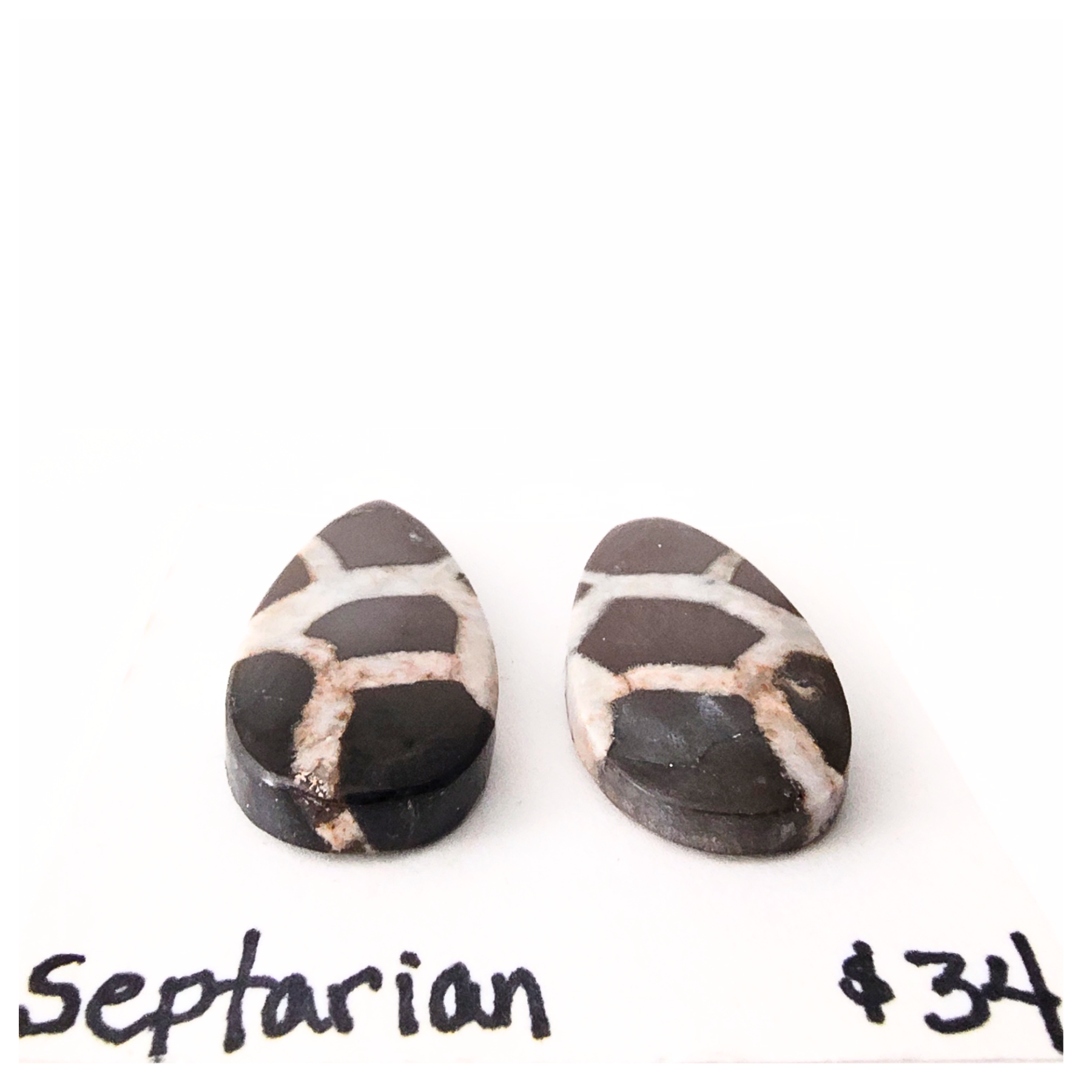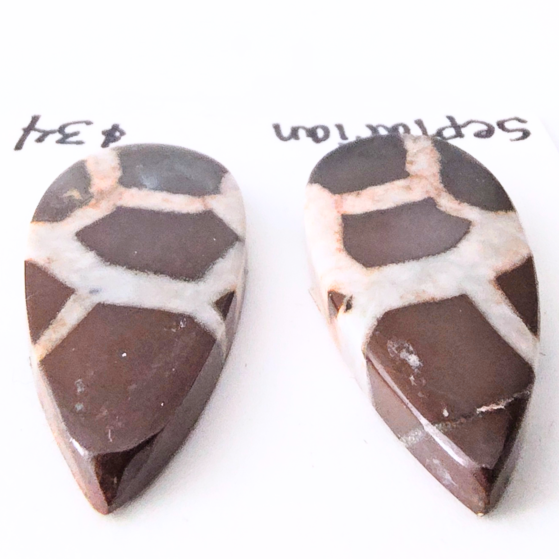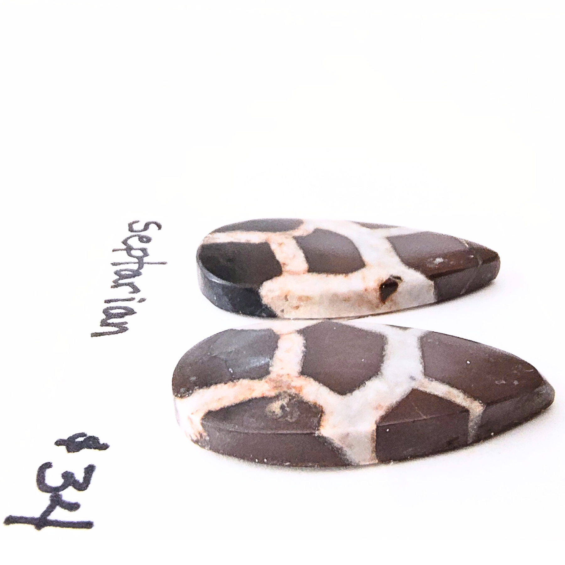 Stunning thick flat sided teardrop shaped Septarian cabochons with fantastic inclusions! Also known as "Lightning Stone" this unique stone is perfect for a bold pair of earrings, pretty pendants. fabulous rings, oruniue bracelets at 14mm x 30mm.