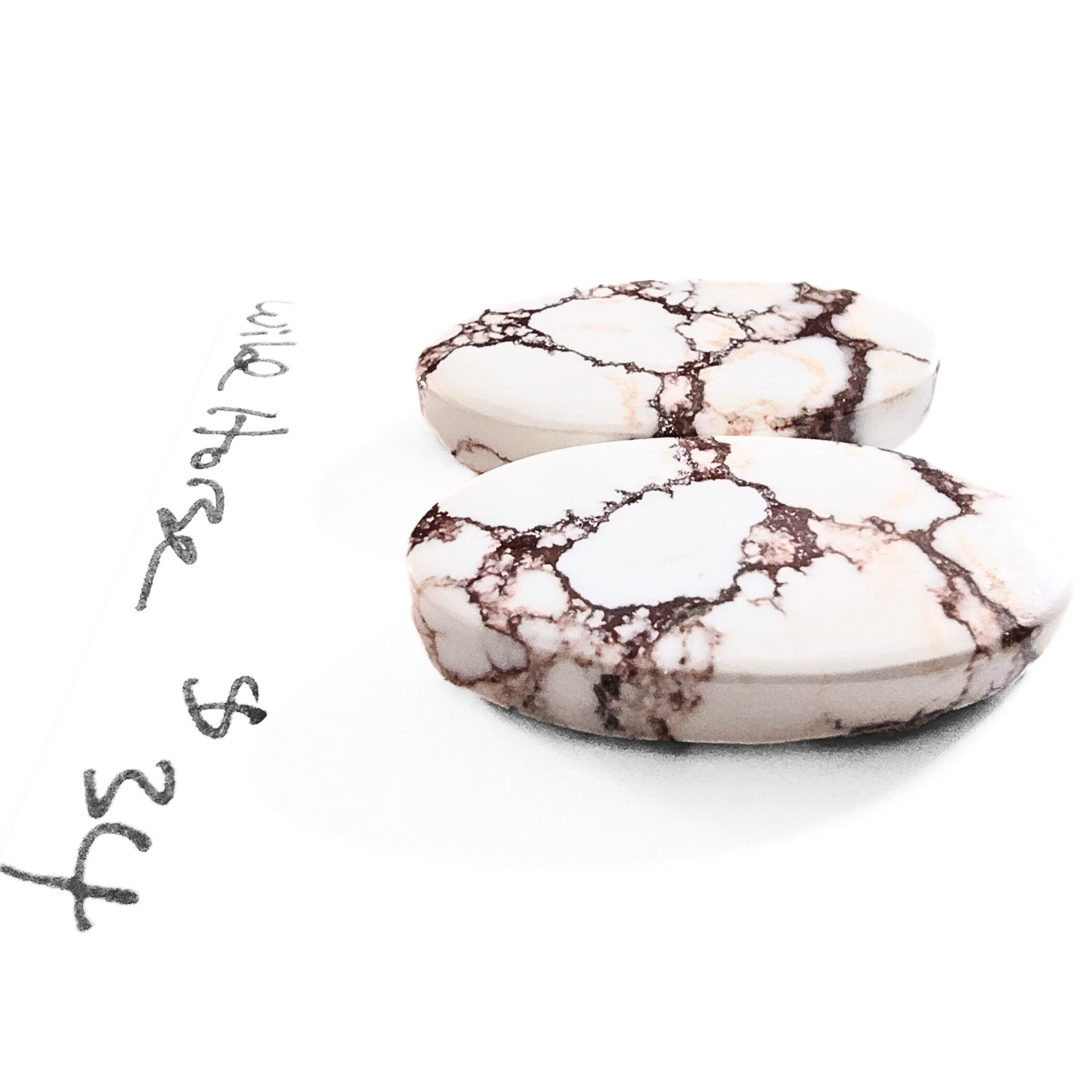 Striking oval shaped, flat-edged chunky Wild Horse Magnesite cabochons in pure white with dramatic veins of rich chocolate brown. Nice size for a bold pair of earrings, pretty pendants, statement rings, or combine for a unique bracelet, approximately 9mm x 21mm.